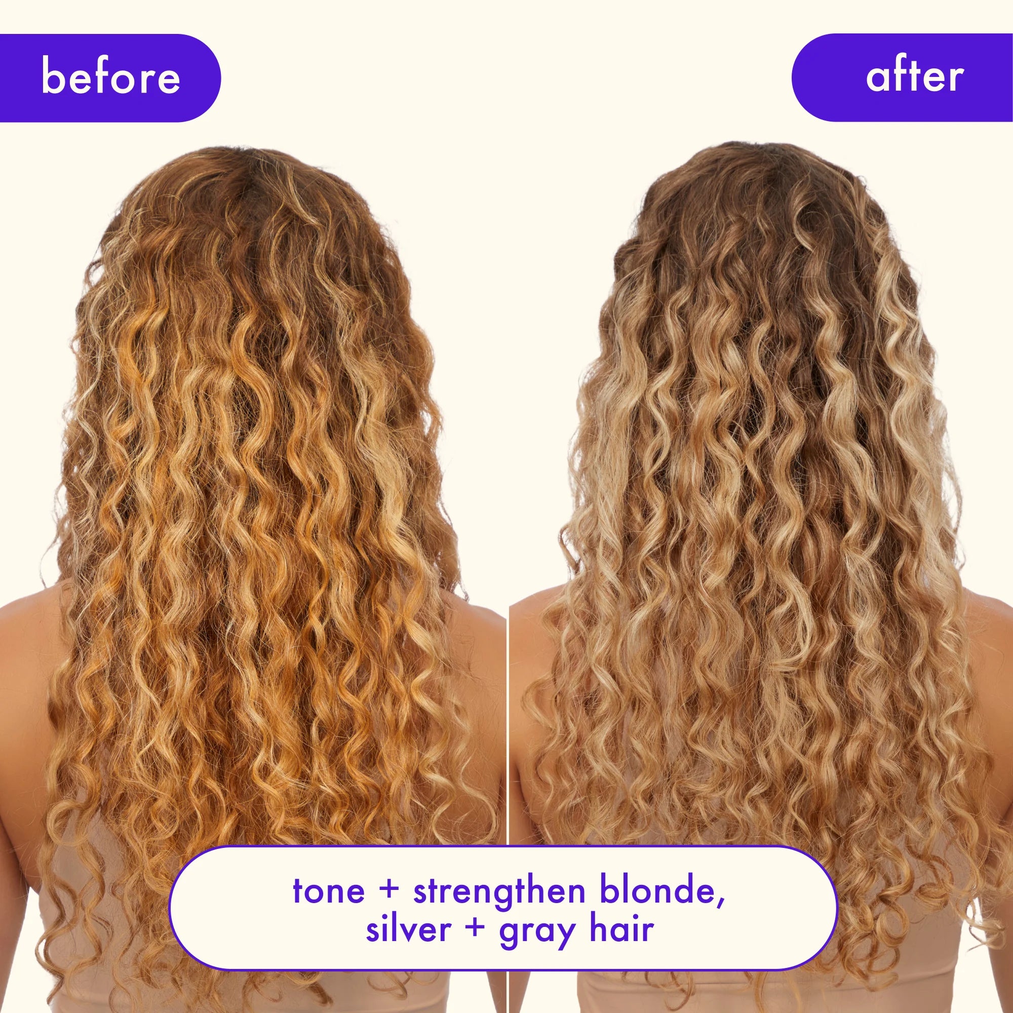 • brightens + tones - brassy hues don't stand a chance. this conditioner brings out the best and brightest shades of blonde, silver, and gray.